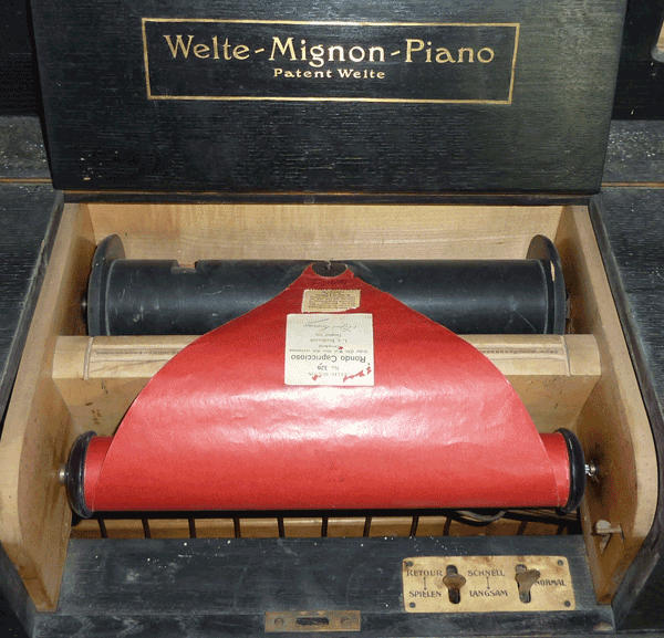 GThe research on the miracles of the recording technologies has been intensified again during the last youple of years. A special perspective in doing so are the studies on ways of interpretation. The suisse museum Musikautomatenmuseum in Seewen in cooperation with some universities is working on these subjects. The presumably only existent Welte recording device can be seen in this museum. It is a recording device having been used for organ recordings. Some pictures of it can be seen here (source: website of the museum). However this recording device doesn't tell how piano music has been recorded - there are some similarities that were most likely used by Welte for piano recordings as well. Still a miracle is the recording of the dynamics. Regarding Hupfeld, there are some details about the recording technology documented by Ludwig Riemann. As a top-ranking scientist in piano music he published some very interesting books, i.e. on the nature pf piano sound and the (musical) value of player pianos. Ludwig Riemann writes, that he had been present during one of the recording sessions of Edvard Grieg, looking carefully at the recording mechanism details. Some of his insights he wrote about in his books - as you can seen some excerpts here.