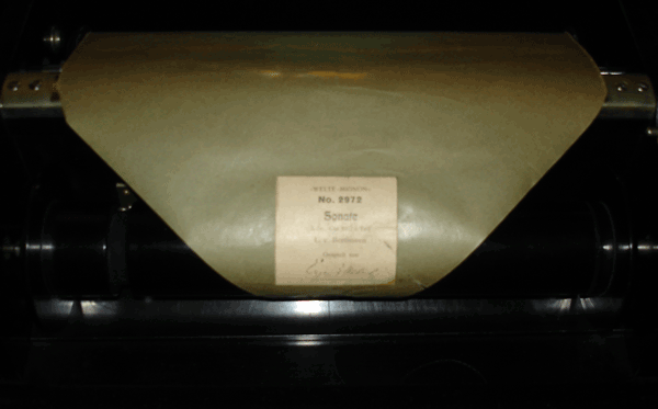 When Hupfeld offered the DEA reproduction system since 1907, it could already fall back on the artist's recordings that had been recorded since 1905. It is little known as well how the recording devices were designed, at any rate, the DEA rolls permitted very good reproductions. The DEA piano rolls are unusually wide. These original piano rolls are very rare - especially as there are even less operational DEA instruments left. Paper (with watermark), reel and sides look very similar to those of the Phonola piano rolls. The mostly wine-red card boxes carry on the front side the label with the roll number, the title and information of the pianist. The same label is found on the piano roll - often besides a photo of the pianist. This roll as well unwinds bottom-top. At the beginning of the roll, the production date is usually found on the back. A hook at the beginning serves insertion onto the take-up reel. DEA rolls are available only as expensive copies in recently punched edition.