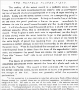 Unfortunately, no recording grand pianos survived the wars, and privacy considerations prevented construction or patent documents from being published, so that it is not entirely known how exactly the recording process was performed. More detailed descriptions are only available from Ampico and Duo-Art. Welte and Hupfeld provided the experts merely with educated guesses about the most likely way of the piano roll recording process. An original Hupfeld catalog from England gave the accompanying description, this is the most detailed publication on this subject by the manufacturer. It is safe to assume that not only the keys played, the tempo and the use of pedals were recorded, but also the dynamic and accentuation. In addition there were musical experts in the room, that took notes during the perfomance of the artist - sometimes being added later to the master roll.