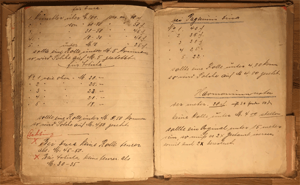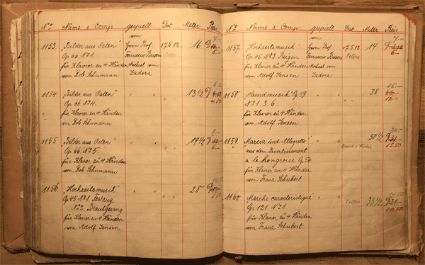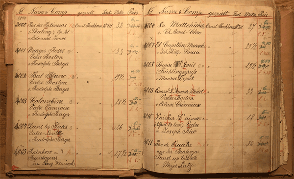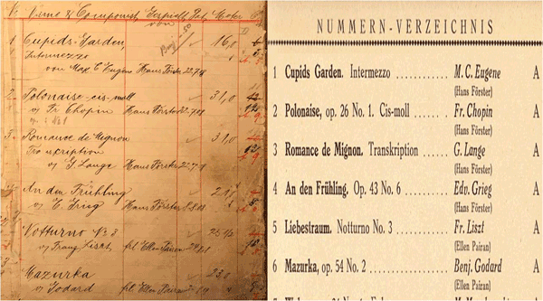 Rather all recordings which were documented chronologically in the book have thus been put onto the roll repertoire later. The photo shows the conversion of the rolls No 1-6. There are just some minor corrections and title changes compared with the later catalogues.