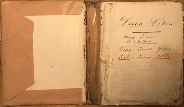 As an extra page we found right in the beginning of the DUCA roll book a page of April 1st, 1914, announcing new pricing. In 1913/1914 the request for rolls decreased given the success of gramophone and radio - as well as the preception of the oncoming WWI. - As the other manufacturers did, Philipps tried to push more sales with lower prices. Therefore, all entries in the book were corrected/lowered April 1st, 1914 with two prize variations (Duca and electr. Pianella).