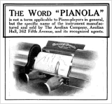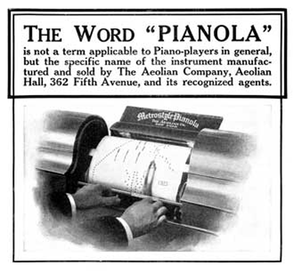 Many manufacturers called their own instruments subsequently "Pianola grand" or "Pianola piano", so that the Aeolian Company pointed out many times that the real Pianola came from its house. The suffix of the Pianola or Phonola was deliberately meant to have a feminine character.