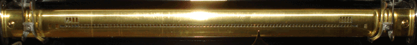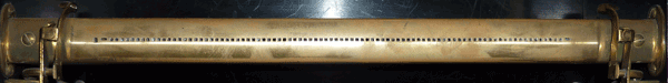The Aeolian Company New York used the 88 note standard scale for the Duo-Art reproduction system, marketed after 1913 and supplemented by punchings for accentuation and drive control. Its four accentuation holes in the tracker bar for bass or descant are remarkable; they are on the left and right above the row of holes for the tones - they control the "expression box ", the accentuation unit. If the selection switch is set on "Standard Full Scale Rolls", the holes for accentuation control are switched off and the four holes beneath are released for the four deepest or highest tones of the full 88 note scale.