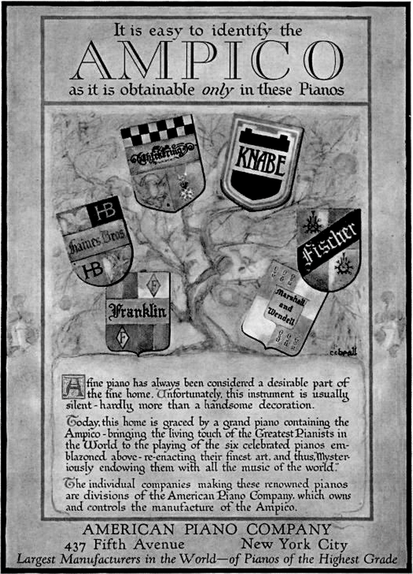 The Ampico reproduction system of the American Piano Company was - like the Aeolian Duo-Art - very successful at the native American market and rarely found in Europe - although European pianoforte manufacturers like Hopkinson, Grotrian-Steinweg and Bösendorfer used this system during its late phase.