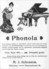 The 65 note scale was marketed by Aeolian in America as early as 1897, applying the Pianola as a push-up player. It entered the German market even before the Hupfeld Phonola. The advantage of the market-leader Aeolian could not be economically maintained, though, at least at the German market that was strongly dominated by German companies. Another reason was that the Pianola push-up player cost in Germany 1250 Reichsmarks, and that was obviously more than the Phonola (850 Reichsmarks), and it had only a smaller range of only 65 tones. As described, the product name "Pianola" yet remained as a generic name of all those self-playing systems.