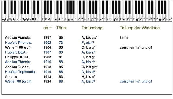 Differentiation by sound range was also tried at reproduction instruments (Philipps DUCA had exactly one tone more than Welte) - so that different scales were introduced and maintained for a long time.