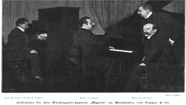 Many big inventions were made by not just one - but a couple of ingenious people. True for Welte-Mignon a well. Bockisch-Welte-Popper-Feurich (picture: Zeitschrift für Instrumentenbau No 25, Mar 1905) were the key people enabling the big success of the Welte-Mignon. Many more people had to contribute to make things happen.