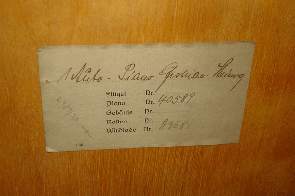Few manufacturers (e. g., Ibach or Schiedmayer & sons) still possess the original documents from the production sites, unfortunately. Most documents have been destroyed during the world wars, so that the year of construction can be determined only with the help of the serial number. In the case of Ibach, you can begin a pay query in their archives by entering the serial number and you will receive a pretty certificate that will state the precise production date, the model name, the original price and the first owner of the instrument. We also have many original catalogs from that age and can extract some details out of them.