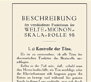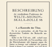 A standard regulation of a piano will be included by a piano tuner immediately and bills this - if at all – per hour. Regulation means that touch, damping power etc. are adjusted so that you will take pleasure in the piano and the potential of the instrument is exploited. The same applies for the regularization of the self-playing mechanism. For these purposes, there are scale or test and setup piano rolls for all pianola types. These special piano rolls are very rare - please, contact us if you need copies of these rolls.