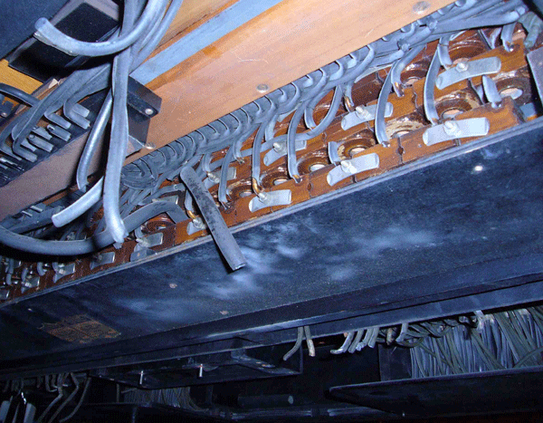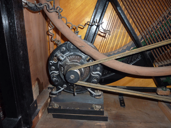 In the case of player and reproducing pianos with ancient motors, the entire electrical system must be replaced for safe operation. Visual inspection will already tell you that the fabric-covered cords, the plug and some connectors will no longer be safe. Please, never plug the connector of a pianola that was not refurbished. Besides the risk of short circuit or cable fire, note that 250 V were sometimes applied to open switches then, any intervention into the open instrument will therefore bear mortal danger!