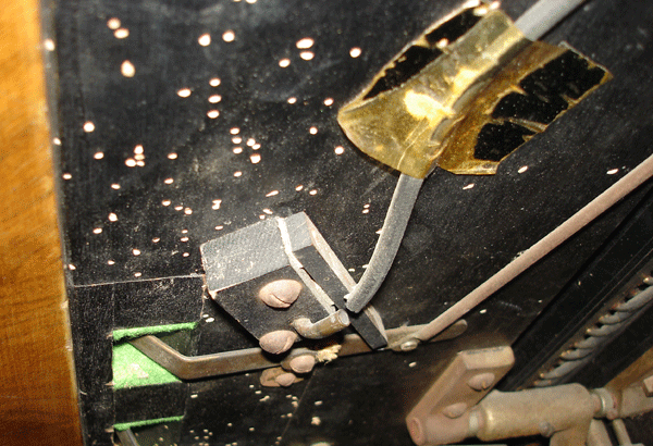 Pests that are dangerous for a pianola (moth, woodworm, rodents) are of course also dangerous for a pianola. The damage to the action, air ducts etc. will generally be extensive and to be amended only for a considerable investment.
