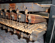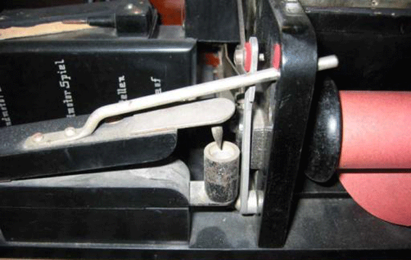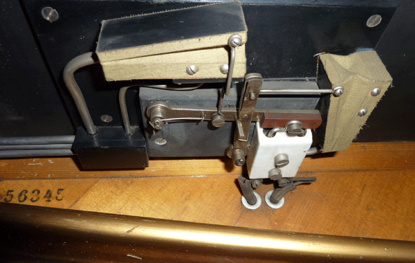 A visual inspection will often not require a subsequent function test at all. If the treading pianola is well preserved, just insert a roll and try to control the self-playing mechanism with the pedals. This will not succeed in most cases, though. If the air-powered motor is moving, then at least this part will still work. An easy test of the tightness of a pedal-driven pianola can be carried out like this: Close all holes at the tracker bar of the pianola with crepe tape and tread the pedals. If the system is closed, a powerful resistance should apply to the pedals. If the pedals can still be easily pushed and a hissing sound is heard, then the pneumatics or/and the lower installation are proven as leaking. The bellows in the upper installation are usually leaking as well. Only a professional may check that.