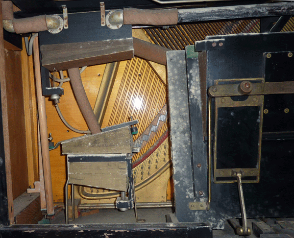 Many instruments were damaged or no longer properly operational after the heyday of the pianola, and especially during the wars. Most self-playing mechanisms were removed from the pianolas. The first step should therefore be to make sure whether the complete self-playing mechanism is still present. It often happened that only the top installation was removed on the fly - or only the bottom installation.