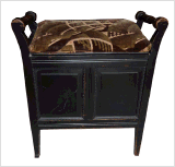 A comfortable stool or bench that is suited for a pianola is most essential. Choose not only by its looks, but primarily by comfortable sitting, adaptability and whether it is intended that two persons may as well sit at the piano. Treaded instruments need beveled seats, because the treading of the pedals is much more comfortable in this sitting position.