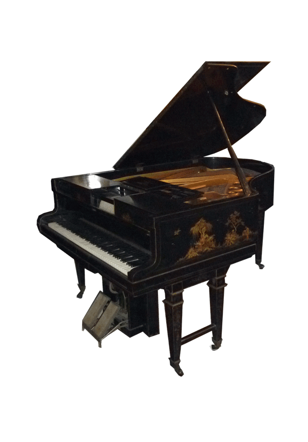 This Blüthner-Hupfeld Solophonola grand piano is probably a unique sample of this design. It was decorated with oriental paintings by request of its first buyer - including the bench that was specially made for this grand piano. The Phonola grand piano was equipped with metal pneumatics, which was very innovative at that time. The Blüthner grand piano integrates the widespread Aliquot system. The instrument is extremely beautifully preserved and will after refurbishing be wonderfully applicable again.