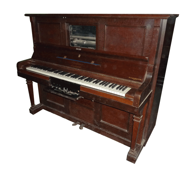 Hupfeld Tri-Phonola anyway is a rare find – in combination with a Blüthner even more difficult to find. This is a late Blüthner-Hupfeld Tri-Phonola upright piano. This instrument is very special, as it has the metal valve system as well as a Hupfeld suction unit built-in. First time we see such a model. The Piano requires a full restoration – another challenge to our restoration experts.