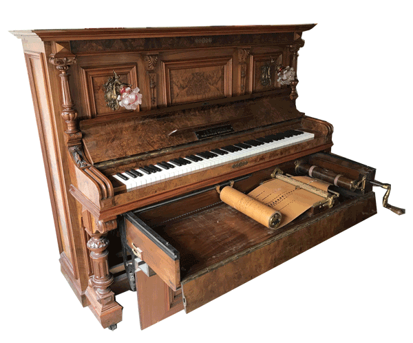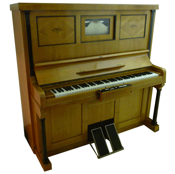 This artcase Kaim Hupfeld Phonola piano is one of the most beautiful ones we have seen so far. The artcase design is very decent and still looks wonderful. The piano is extremely well preserved - still playing pretty good. The sound of the piano is -due to the quality of Kaim- very good. A fantastic Phonola Player piano.