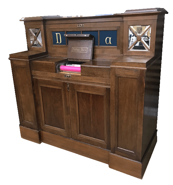 This is an extremely rare Philipps Pianella D (Duca) piano equipped with a roll changer ("revolver mechanism" for five rolls). It is untouched and very well preserved. It plays DUCA rolls that have a special metal rod (instead of a hook) at the beginning.